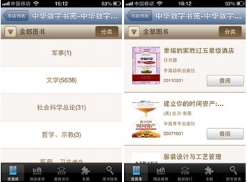 (3)豐富的圖書(shū)資源,可在電子書(shū)店和數(shù)字圖書(shū)館進(jìn)行圖書(shū)的購(gòu)買和借閱。